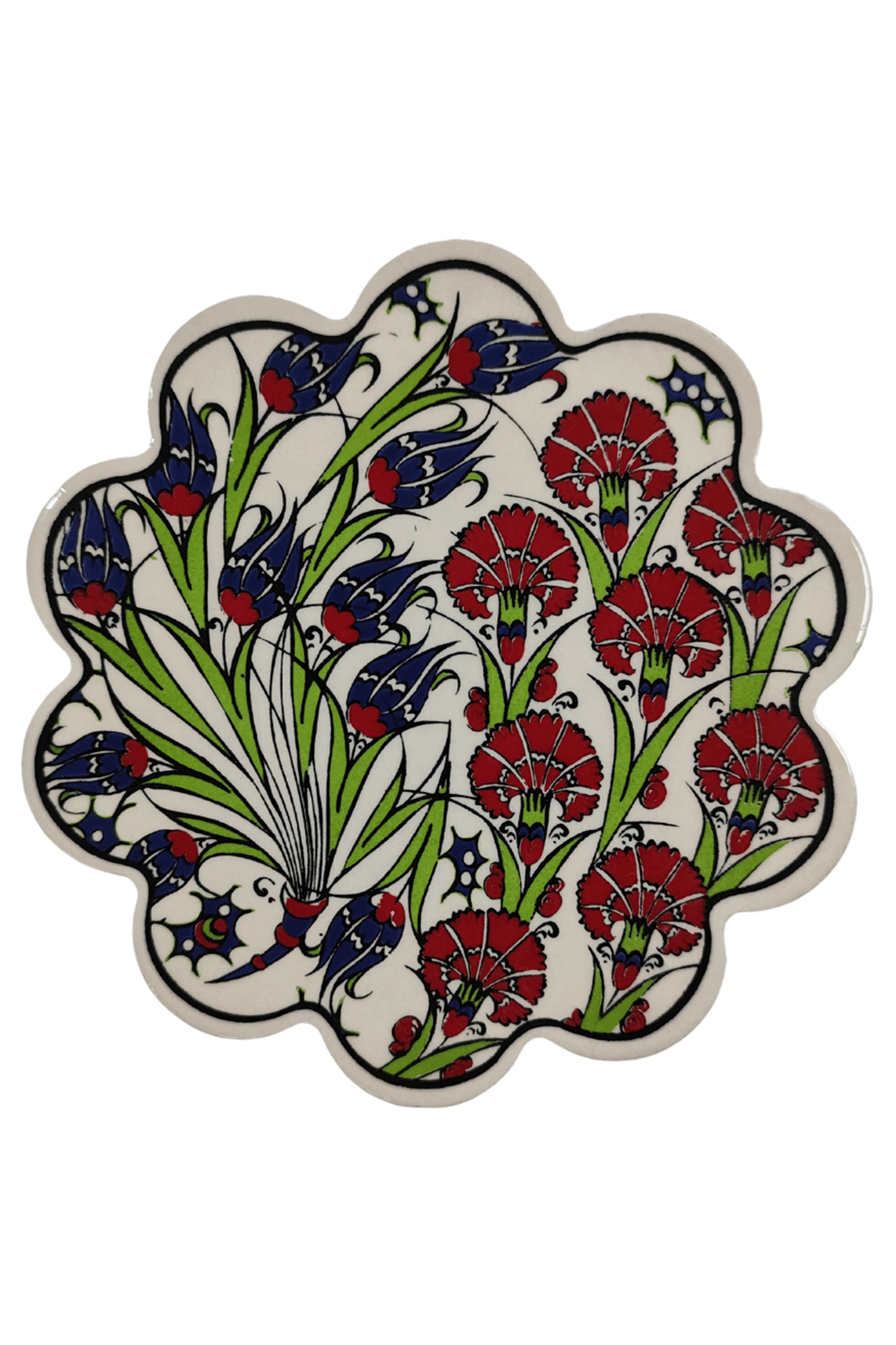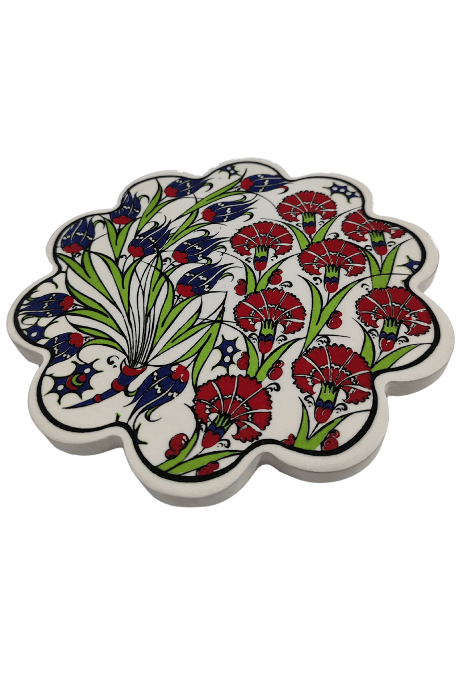 Çini Desenli Çiçekler Seramik Nihale 18 Cm Koruyucu Kaydırmaz Altlik Model 8