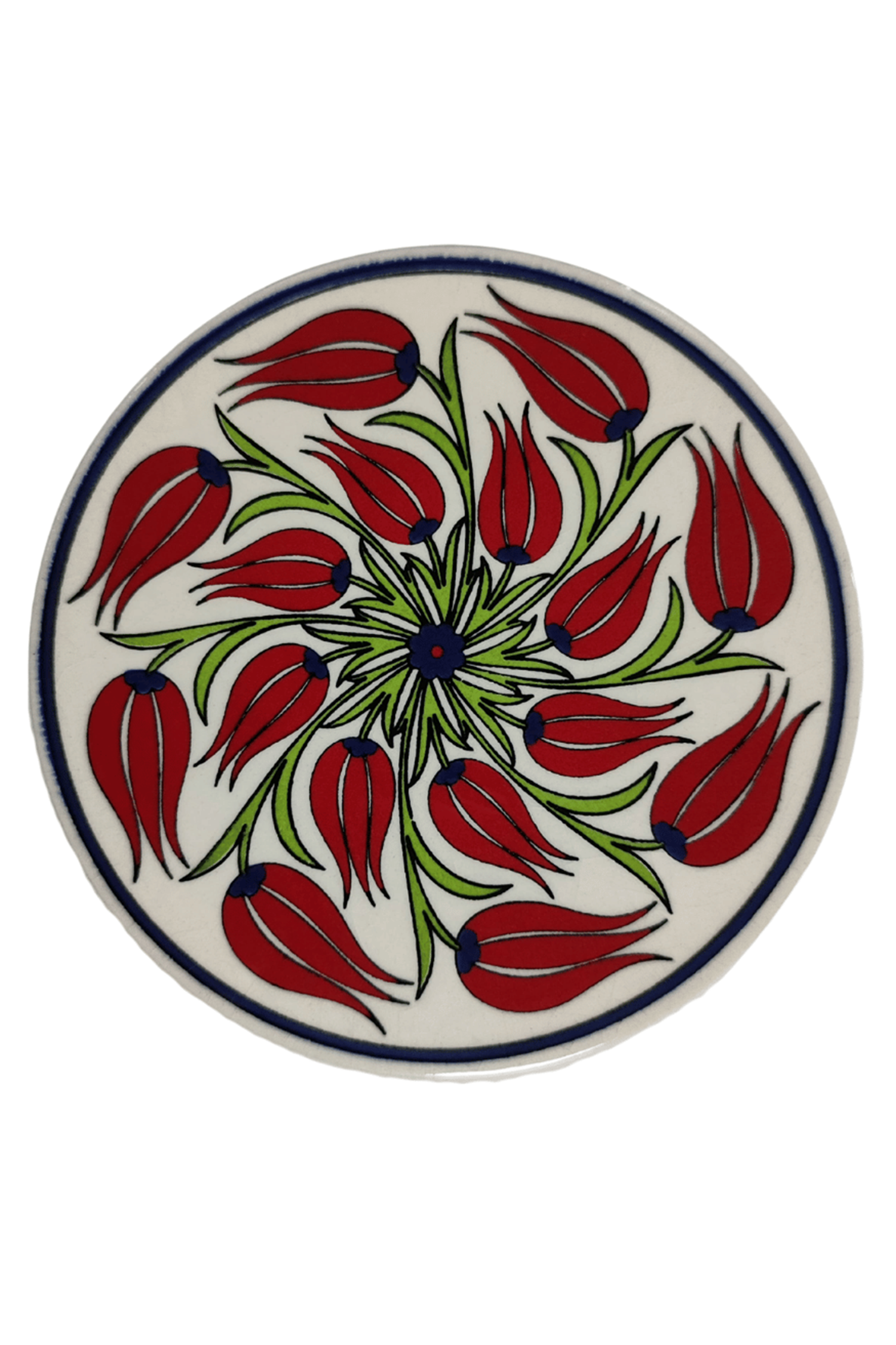 Çini Desenli Çiçekler Seramik Yuvarlak Nihale 16 Cm Koruyucu Kaydırmaz Altlik Model 1