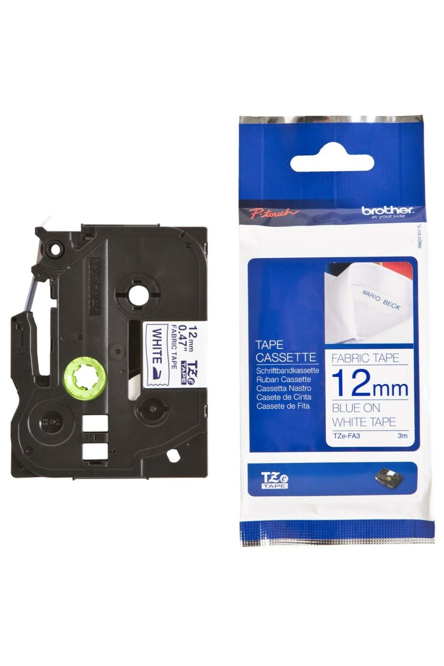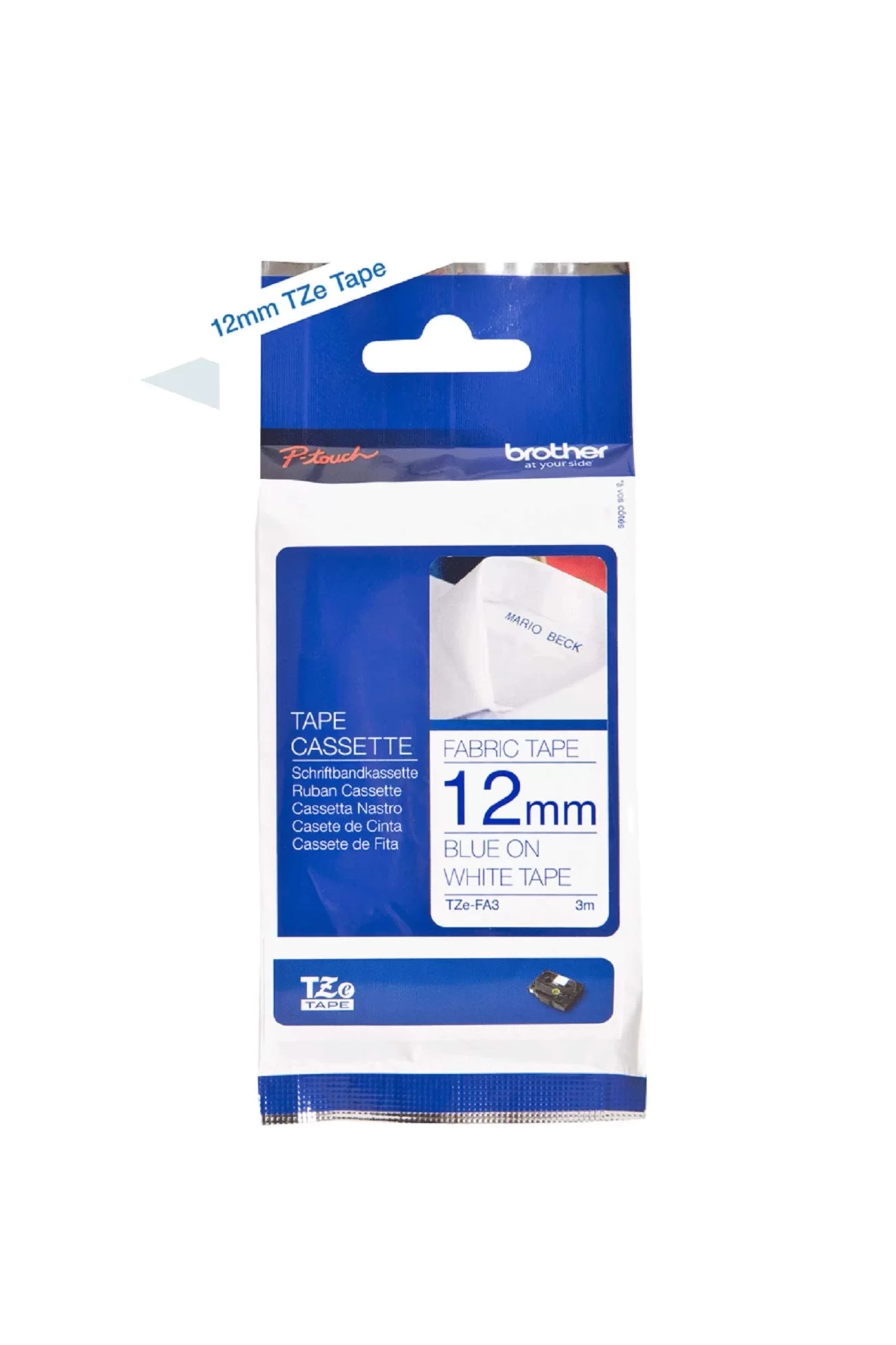 Brother TZE-FA3 P-TTOUCH Tekstil Ütü Bandı Beyaz Üzeri Mavi, Özellikleri