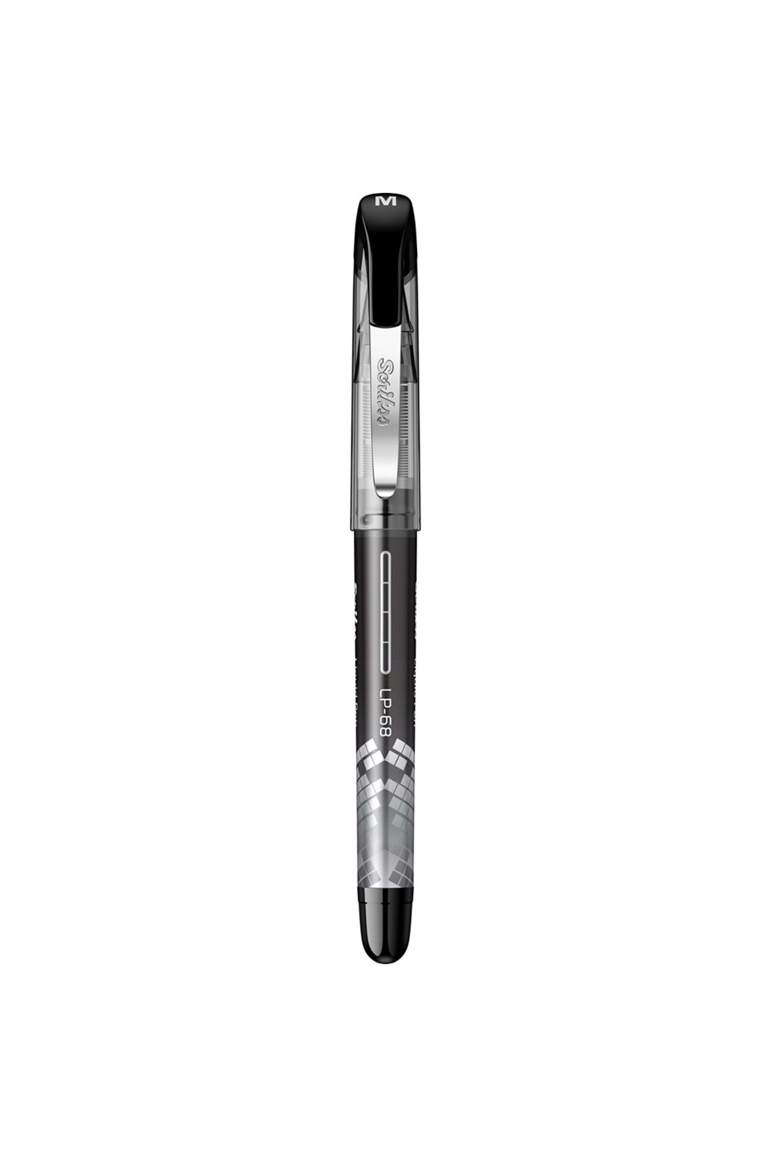 • Krom kaplama paslanmaz çelik klips • Transparan gri plastik kapak • Şeffaf gri ABS gövde ve mürekkep seviye göstergesi • Şeffaf plastik grip • Tek kullanımlık Roller Kalem Refili • 0.7 mm M likit kalem uç